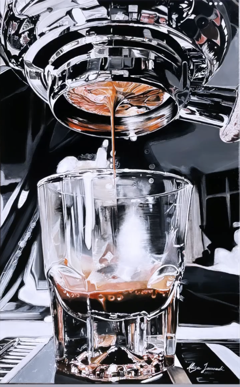In this hyperrealistic painting, I’ve captured the essence of a coffee machine in its most exquisite moment, crafting the perfect brew.